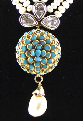 Jhadhau with semiprecious stones strung in fresh water pearls.